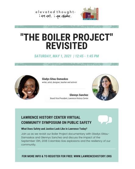 Join us as Daniel and Rania revisit our Boiler Project documentary with Gladys Gitau-Damaskos and Glennys Sanchez and discuss the impact of the September 13th, 2018 Colombia Gas explosions and the resiliency of our community. We will reflect on what justice and safety look like and collectively imagine a safer and better reality for our city. To see the full agenda, speakers, and to register, please visit the event site at: www.lawrencehistory.org/education/symposium/2021/whova